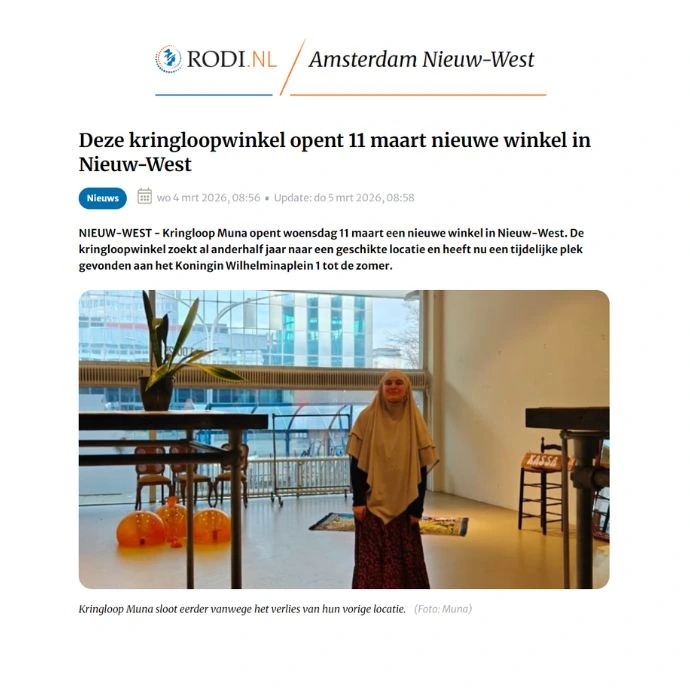 Kringloopwinkel Muna heropent woensdag in Nieuw-West